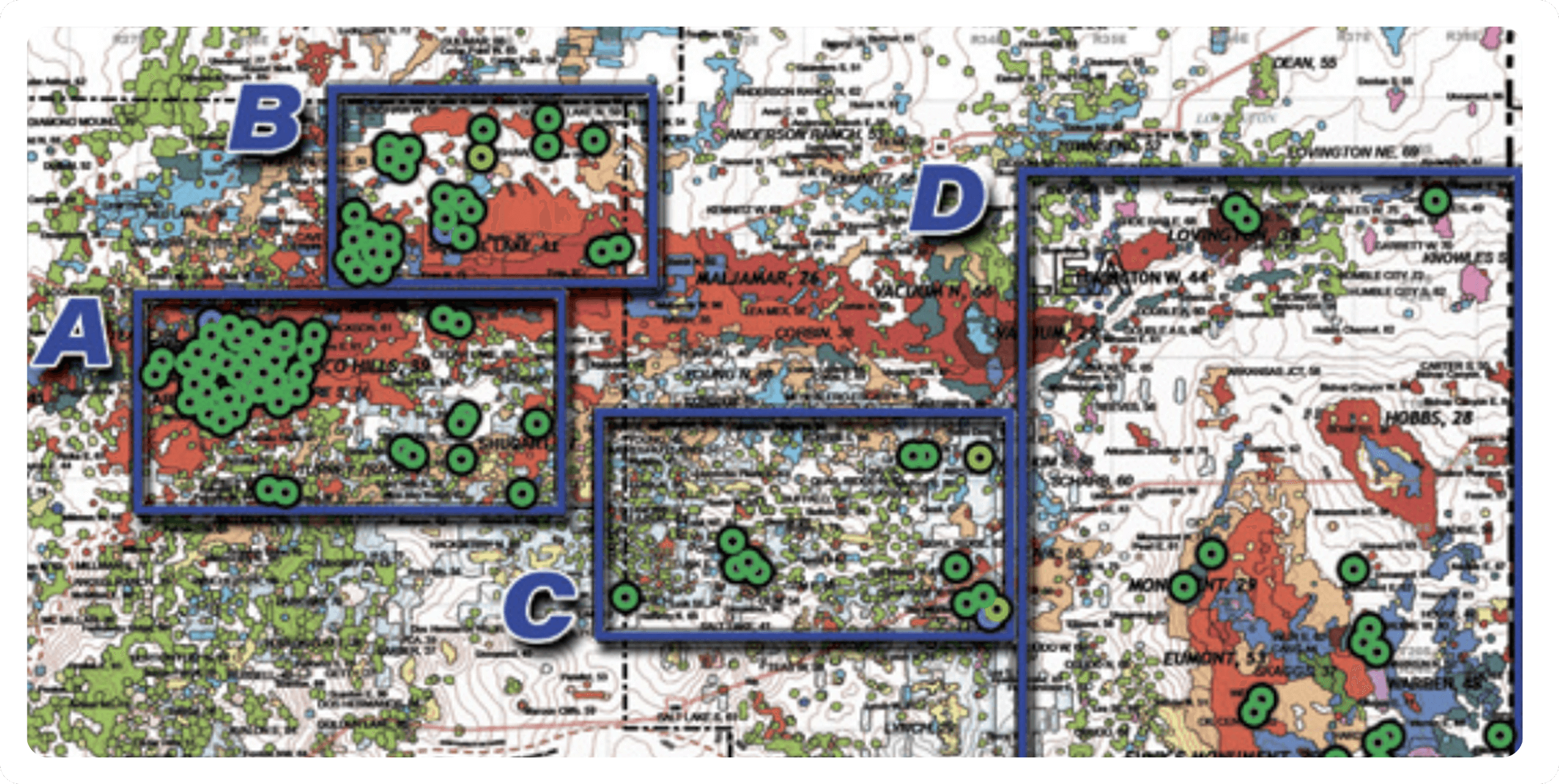 Regional Field Map - Project Areas A, B, C and D Shown